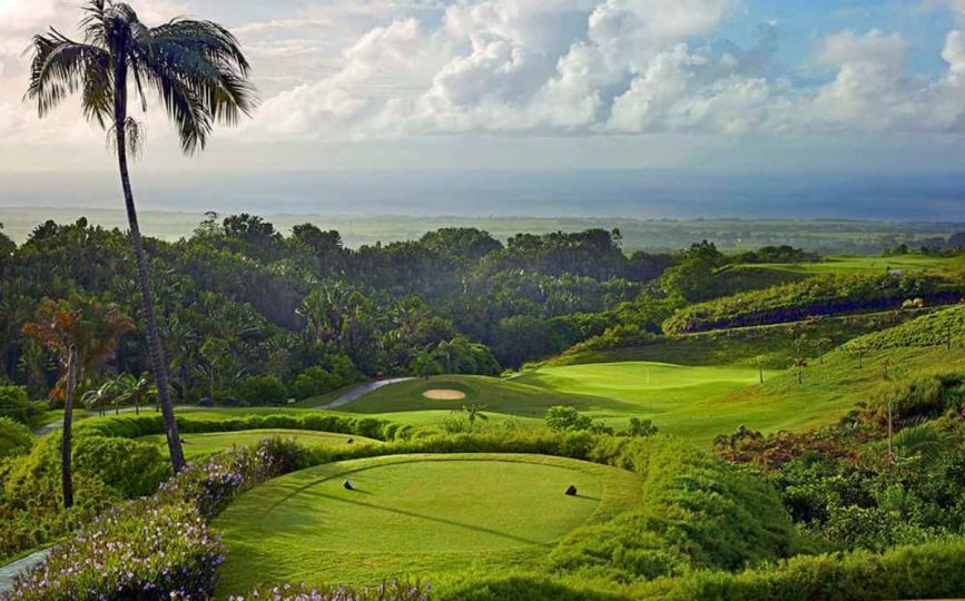 The estate sits high in the southern hills, where the weather is often cooler than coastal resorts. Many visitors are surprised by this. When you arrive, you will see wide fairways, rolling hills, and long views across the island’s interior.